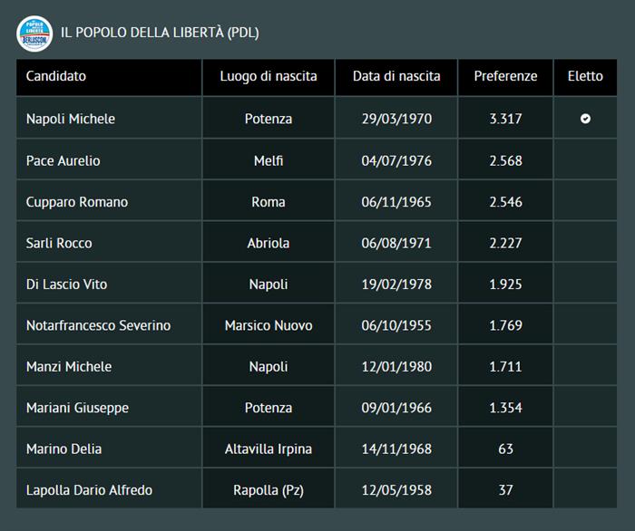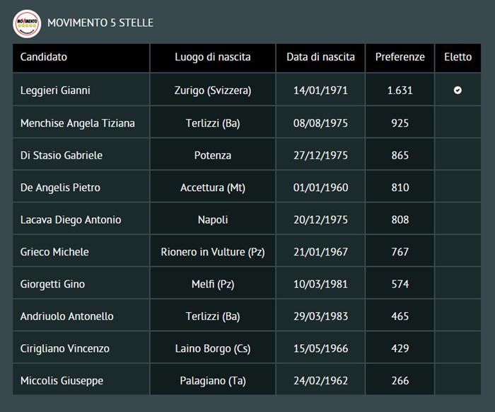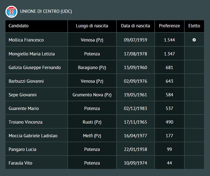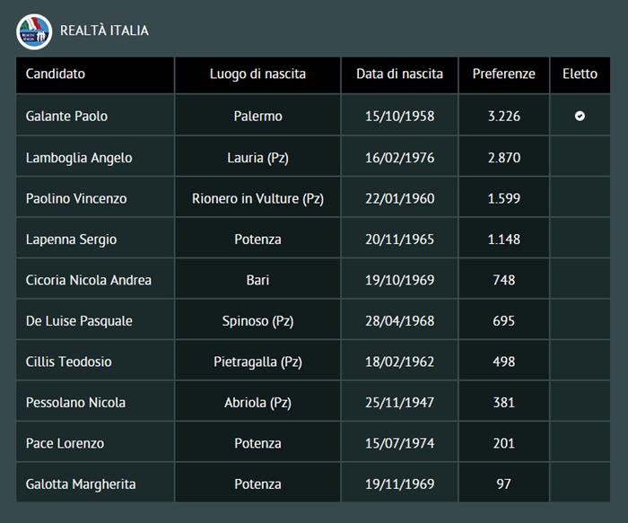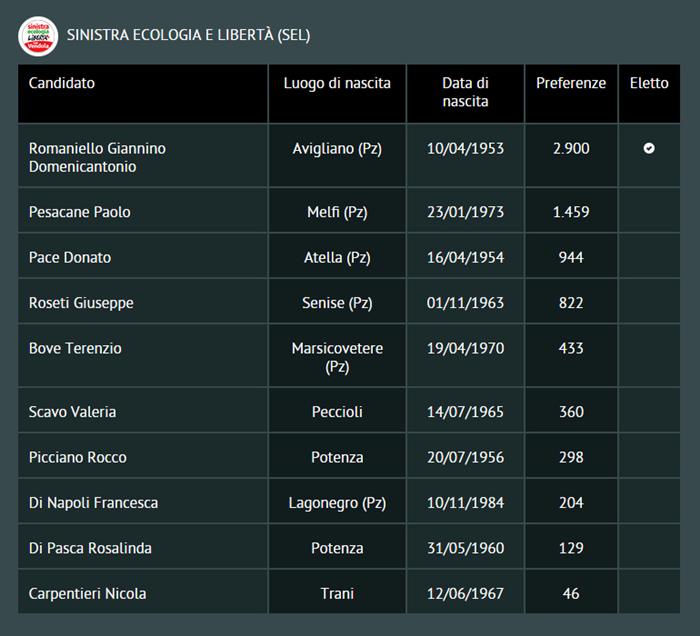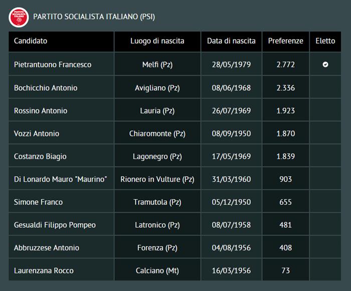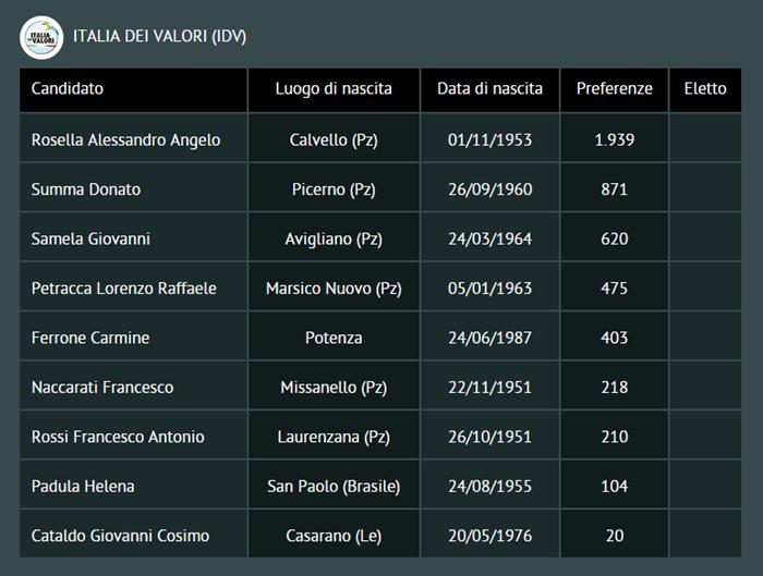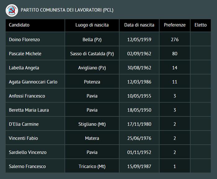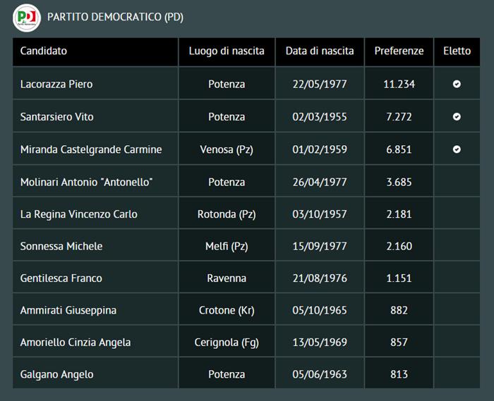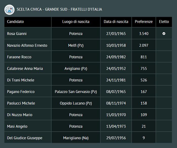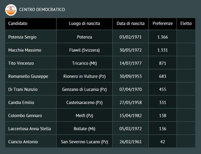 BASILICATA - CIRCOSCRIZIONE DI POTENZA - I CANDIDATI E LE PREFERENZE |