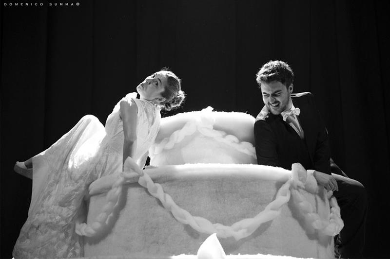 SASSO DI CASTALDA – Dopo il successo de “La Bisbetica domata” nella versione proposta dalla salentina Factory Compagnia Transadriatica, “Le Valli Del Teatro” ospitano un'altra talentuosa realtà del teatro pugliese. Sabato 30 Gennaio, Elio Colasanto e Alessia Garofalo, giovanissimi attori molfettesi, entrambi under 30, saranno i protagonisti di “Nella gioia e nel dolore”, spettacolo di cui firmano anche la regia e il testo. A partire dalle 21:00, gli spettatoti del Teatro Mariele Ventre saranno coinvolti nelle peripezie tragicomiche di una coppia pugliese prima, dopo e soprattutto durante il matrimonio che hanno loro imposto. A dominare sulla scena dello spettacolo, un' enorme torta nuziale, che funge anche da palco dove tutto si svolge. Alla sua sommità, Sabino e Nunzia, gli sposi, vivranno gli attimi tipici di un matrimonio del Sud, tra usanze, eccessi, inconvenienti e nevrosi. I due ragazzi sono immersi in un mondo fatto di convenzioni e abitudini, nel quale anche il matrimonio è una scelta di comodo, per non restare soli, per emanciparsi, per assecondare quanto vorrebbe la gente. Oltre questo mondo artefatto e costruito esiste però l'amore, quello vero, quello che non si può rivelare, quello che non ha mai potuto indossare l’abito bianco. Un amore fatto di sguardi e di parole non dette, i cui protagonisti sono i genitori degli sposi che, durante il matrimonio dei loro figli, si confidano, si scoprono e si ritrovano tra i confetti, il riso, le bomboniere, le foto, i balli di gruppo, gli auguri e le infinite portate del pranzo nuziale. E poi ci si ritrova oltre questo segreto per chiedersi cosa vuole dire appartenersi, amarsi, nella gioia e nel dolore. “Nella gioia e nel dolore” ha vinto il prestigioso premio “Giovani Realtà del Teatro 2014” per aver costruito con coerenza e decisione stilistica una tessitura drammatica e comica che solleva tematiche relazionali riconoscibili con immediatezza non senza provocare momenti di divertente surrealtà. Il 5 Febbraio la rassegna “Le Valli del Teatro” continuerà con “Io provo a volare”, omaggio a Modugno, tra teatro e musica, della Compagnia Berardi Casolari. Info su biglietti, abbonamenti e spettacoli sul sito ufficiale della rassegna levallidelteatro.it. |