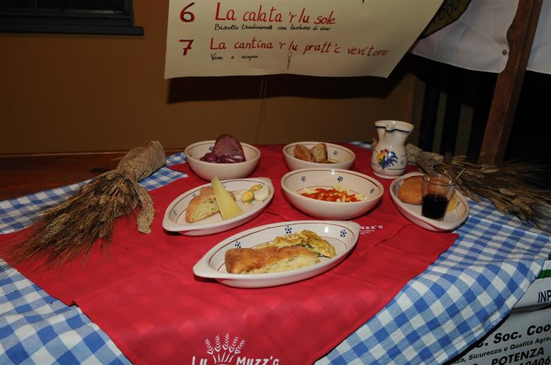 Cultura in senso proprio rivive nella tredicesima edizione della “Giornata tipica del mietitore – Lu Muzz’c”: un evento con al centro il tema della valorizzazione del cibo come strumento di promozione locale. “Lu Muzz’c” è una manifestazione enogastronomica che si tiene il 17 agosto di ogni anno a Filiano ed è organizzata dalla Pro Loco di Filiano, con il patrocinio del Comune di Filiano e dell’UNPLI Basilicata, e con il contributo della Regione Basilicata e dell'A.P.T. di Basilicata. “Gli aspetti fondamentali dell’evento Lu Muzz’c – dichiara Vito Sabia della Pro Loco Filiano, uno degli organizzatori storici della manifestazione - per invitare il turista a conoscere memorie della tradizione contadina e per conoscere la cucina locale sono la centralità del cibo, dello stare insieme e delle abilità legate alla mietitura”. Continua Sabia: “La convivialità: è bello mangiare in compagnia, stare insieme agli altri; la mietitura era un momento molto importante per il mondo contadino e si concludeva con dei festeggiamenti. Le emozioni: i profumi e i sapori del cibo fanno rivivere emozioni forti vissute nel passato dai nostri nonni contadini e mietitori. Le tradizioni: la scelta dei cibi, il modo di prepararli hanno radici antiche; il cibo è un fattore di identità per ogni popolo della terra lucana, ognuno ha le sue tradizioni e i suoi alimenti”. I piatti dell’itinerario enogastronomico. Lungo il centro storico di Filiano vengono allestiti sette stand gastronomici per simboleggiare le fasi che scandivano l’attività dei mietitori. Vengono preparate tutte le pietanze che componevano la varietà della tradizione agricola perché siano degustate. Tradizionalmente la faticosa giornata dei mietitori era suddivisa in sette fasi (ciascuna denominata con un preciso termine dialettale) rappresentative di altrettanti pasti con cui solevano ristorarsi: