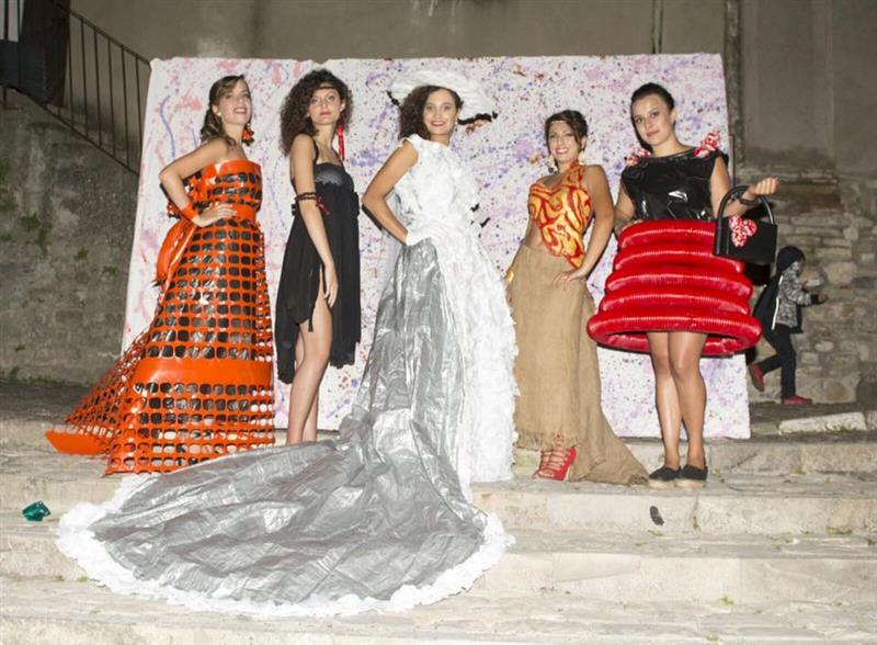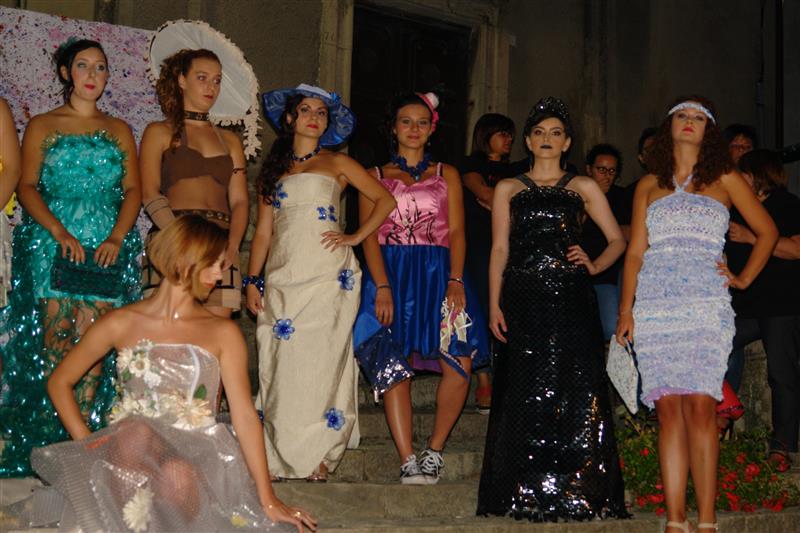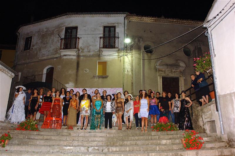 1° premio ”Candore” - abito da sposa in juta sacco, decorazioni in carta e plastica, cappello con giornali e piatti di plastica, stilista Massimo Nardiello 2° premio: "Plastica coi ferri" - abito realizzato a maglia con striscioline ricavate da buste di plastica, stilista Fiora Larocca 3° premio “Mnemosine“ - abito realizzato con nastro magnetico di cassette vhs video, tagliato a striscioline intrecciate verticalmente e orizzontalmente, decorazioni con cd, stilista Stefania Guarini Quindici sono stati gli abiti iscritti al concorso, realizzati con i materiali più disparati e inediti da stilisti provenienti da vari punti della regione. Fuori concorso alcune creazioni realizzate dai giovani della Pro Loco di Trivigno, ideatori dell’iniziativa, che hanno lavorato con passione per la riuscita della stessa, con la collaborazione della collettività e di professionisti del settore della moda. A Massimo Nardiello è stato conferito il premio consistente in 500 euro con un abito da sposa indossato da Sara Tammone che si è aggiudicata la fascia di “modella ideale” della serata, mentre a tutti i partecipanti è stato consegnato un attestato di merito. Franca Marra, Simona Brancati, Vito Palladino e Anna Martino sono i giurati che hanno valutato gli abiti in gara. La serata è stata condotta da Eliana Positano, mentre Ida Bilancia ha presentato una performance di danza. “Papocchio” è il nome d’arte di Teo Santagata, artista di strada che ha allietato grandi e piccoli. In attesa della seconda edizione del concorso, prevista per agosto 2017, i primi 10 abiti classificati saranno esposti in una mostra di arte varia, nella sezione moda a Marconia il prossimo 26 agosto. Inoltre è prevista la partecipazione di tutti i lavori del concorso al festival di riciclo e arte contemporanea di Macerata. La sfilata sarà trasmessa integralmente su Tele Sud nei prossimi giorni. L’iniziativa è stata realizzata con il patrocinio del Comune di Trivigno e APT Basilicata, con l’adesione di Giocoleria e Giemme Tessuti. Il Presidente della Proloco di Trivigno Info e comunicazioni |