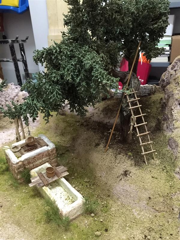 Un’opera particolare nel suo stile, che ripropone, in uno scenario palestinese, un presepe ricco di particolari e di rievocazione evangelica. In esposizione la prima parte realizzata, di circa 6 metri quadri. L’opera finita raggiungerà i 15 metri di scenografia ed è stata commissionata da Don Giuseppe Cacosso, parroco della parrocchia S. Marco evangelista di Rionero in Vulture. L’interesse personale del sacerdote per questa forma di espressione artistica e la volontà di proporre ai suoi parrocchiani per Natale 2016 un presepe originale, singolare, che fosse diverso dallo stereotipo esposto sino ad ora, si sono incontrate con la passione e la creatività di Dino Gallicchio e Benito Recine che, senza perder tempo, hanno dato il via alla prima parte di realizzazione. L’opera sarà portata a compimento entro novembre e sarà presentata ufficialmente alla comunità l’8 dicembre, giorno dell’Immacolata Concezione. L’opera di Gallicchio e Recine, in esposizione a Guardia Perticara nel mese di agosto, ha il fine di mettere in risalto il presepe non soltanto come tradizione natalizia, bensì come espressione di una forma d’arte, una delle numerose facce del prisma della creatività. Inoltre la rassegna, allestita nel periodo estivo, ha la peculiarità di essere fruibile ai più, quando i borghi lucani accolgono il rientro di chi risiede in località diverse da quelle natali. All’inaugurazione hanno partecipato, oltre ai due autori, la Presidente della Pro Loco, Maria Montani e don Gaetano Fernando Grippo. Notevole affluenza di pubblico e lusinghieri apprezzamenti hanno caratterizzato la serata. L’esposizione resterà fruibile al pubblico, nei locali messi a disposizione dalla Pro Loco in via Roma, fino al 22 agosto dal lunedì al venerdì, dalle ore 17,00 alle 20,00. Avv. Maria Montani