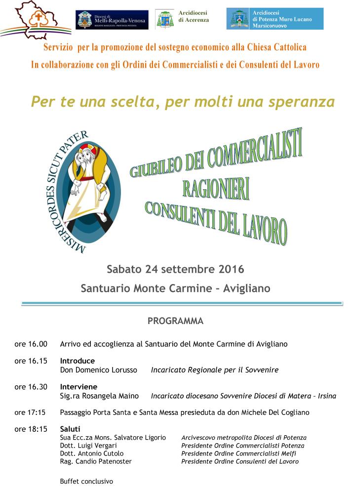 Il Sovvenire della diocesi di Melfi-Rapolla-Venosa, di Acerenza e di Potenza-Muro Lucano-Marsico Nuovo propone il “GIUBILEO DEI COMMERCIALISTI RAGIONIERI CONSULENTI DEL LAVORO”