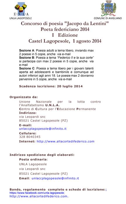 CONCORSO DI POESIA "JACOPO DA LENTINI" POETA FEDERICIANO - 1° EDIZIONE 2014