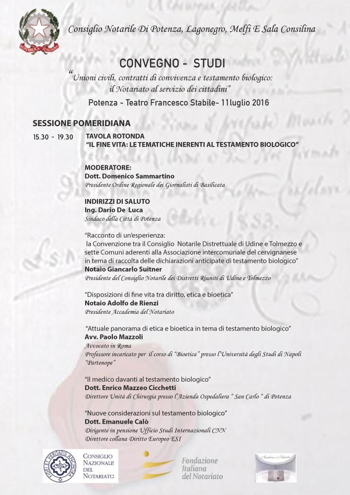 UNIONI CIVILI, CONTRATTI DI CONVIVENZA E TESTAMENTO BIOLOGICO: IL NOTARIATO AL SERVIZIO DEI CITTADINI
