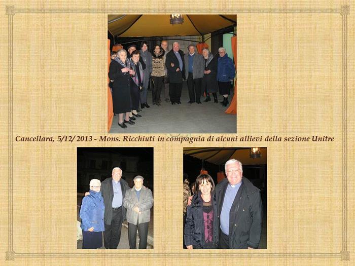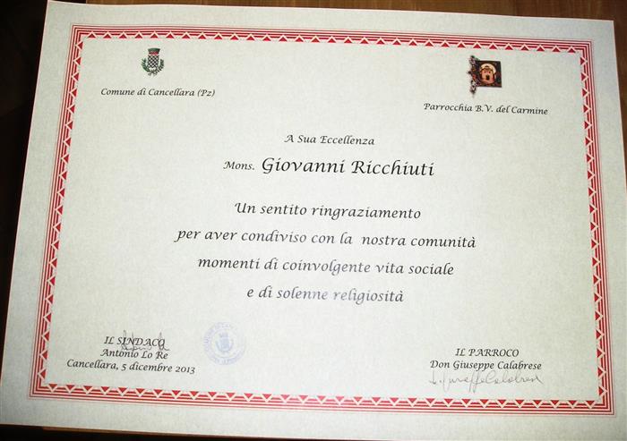Cancellara - Con questa esortazione, Mons. Giovanni Ricchiuti ha salutato, durante l’omelia, la comunità parrocchiale di Cancellara. Dal prossimo 4 gennaio, infatti, lascerà l’Arcidiocesi di Acerenza che ha guidato per ben 8 anni e, per volontà del Santo Padre, si trasferirà presso la sede episcopale di Altamura - Gravina - Acquaviva delle Fonti. Lo scorso 5 dicembre, ha celebrato una Messa nella Chiesa dell’Annunziata di Cancellara dove, ad attenderlo, c’era una folla immensa di fedeli e numerosi bambini. Davvero tanta la commozione che traspariva dalle sue parole, a tratti smorzata da qualche battuta scambiata con i bambini, insieme ai quali ha recitato le preghiere davanti alla statua della Madonna. Sebbene affettivamente dispiaciuto per il distacco dall’Arcidiocesi di Acerenza, Mons. Ricchiuti, in segno di obbedienza e confortato dall'affetto dei fedeli, si è detto pronto per questa nuova missione. Al termine della celebrazione, non sono mancati i saluti del parroco don Giuseppe Calabrese e del sindaco Antonio Lo Re. Entrambi hanno rievocato i momenti più belli del suo passaggio: dall'inaugurazione della Chiesa dell’Annunziata alle feste patronali, senza dimenticare la recente visita pastorale. Durante lo scambio dei saluti gli hanno donato una pergamena, in segno di riconoscenza per aver condiviso con la comunità cancellarese momenti di coinvolgente vita sociale e di solenne religiosità. Anche l’Associazione Unitalsi, con profonda gratitudine, si è unita ai saluti. Dopo la Santa Messa, il Vescovo si è diretto presso la sede dell’Unitre per offrire la sua consueta conferenza annuale. C’è sempre stato un particolare legame con questa Associazione, sarà perché è stato proprio lui a tenerla a battesimo. Ai saluti e auguri per la sua nuova missione da parte del prof. Rocco Saracino, è seguita una riflessione del Vescovo in merito alla visione di Papa Francesco sulla Fede cristiana e sulla Chiesa. Tanta è stata la partecipazione dei presenti per l’argomento trattato, quanta l’ammirazione verso il nuovo Pontefice che, con la sua disarmante semplicità, ha conquistato il cuore di tutti fin dal suo primo saluto. Al termine, la Presidente Rosa Lioi ha ringraziato affettuosamente Mons. Ricchiuti, in particolare per la sua generosa disponibilità verso la sezione Unitre. Il 28 dicembre l’Arcidiocesi Acheruntina dedicherà a Mons. Ricchiuti una cerimonia di commiato prima di partire alla volta della sua nuova sede da dove, chissà se un giorno, posando lo sguardo sulle cime innevate della Basilicata, il suo cuore sarà attraversato da una punta di nostalgia per i luoghi dove ha vissuto la sua prima esperienza di Vescovo. |