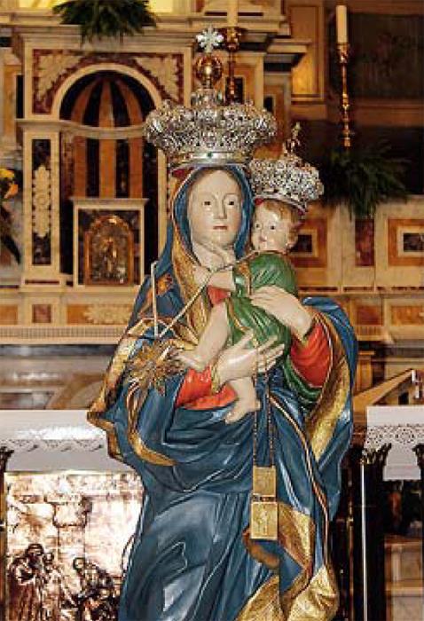 La devozione per la Madonna del Carmine pare si sia diffusa in Avigliano prima che in altre zone della Basilicata grazie ad alcuni reduci dalle Crociate e, fin da quell’e poca, sulla vetta di una «montagnola » a 1228 metri di altitudine e lontana circa 8 km da Avigliano, pare dovette esserci una rudimentale capanna con u n’immagine della Madonna dipinta su un sasso. I ricordi precisi, però, hanno inizio nel funesto 1694, quando ci fu una terribile carestia e, l’8 settembre, alle ore 19, uno spaventoso terremoto. La popolazione, spaventata, si rifugiò sulla «montagnola» e lì rimase accampata per 40 giorni, facendo voto che se gli aviglianesi fossero tornati sani e salvi alle loro case, avrebbero proclamato la Madonna del Carmine loro protettrice, avrebbero acquistato, con pubbliche offerte, una bellissima statua in legno ed avrebbero costruito una cappella in quel luogo. Così avvenne. Nel 1696, al termine della costruzione della cappella sul monte, il Sindaco propose che la Beatissima Vergine del Carmine fosse proclamata protettrice di Avigliano, ma si dovette attendere fino al 1811 perché l’autorità ecclesiastica la ratificasse ufficialmente. Col tempo la festa si ampliò, ma a causa di numerosi incidenti che avvenivano al termine della processione per l’abitudine di alzare un po’ troppo il gomito, la festa fu sospesa. Nell’agosto del 1719 un violentissimo uragano si abbatté sulla città e sulle campagne: una fanciulla quindicenne, sorpresa dalla tempesta mentre lavava i panni nel torrente Braida, stava per annegare quando le apparve la Madonna del Carmine che la salvò e l’accompagnò fino alla «croce di San Biagio», località alla periferia di Avigliano, dove la Madonna le disse di riferire la sua volontà che fossero ripresi i festeggiamenti in suo onore. L’antica consuetudine fu quindi ripristinata e mai più interrotta, incrementandosi sempre di più anche tra gli abitanti delle altre zone della provincia.