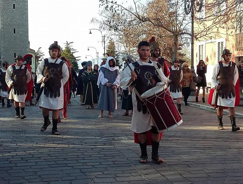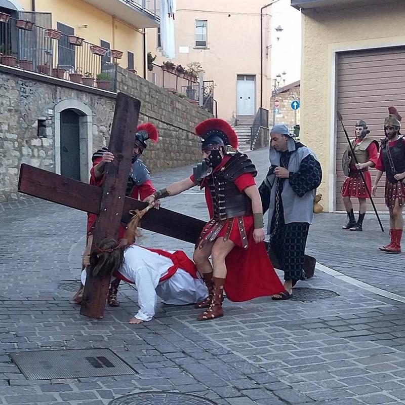 FILIANO - Che magia la Via Crucis vivente di Filiano. Ogni anno è sempre più suggestiva e coinvolgente e, edizione dopo edizione, si arricchisce di significati sempre nuovi, di messaggi e di emozioni. Per il trentaduesimo anno consecutivo la Pro Loco di Filiano ha allestito la stupenda rappresentazione della Via Crucis vivente, proposta da sessanta figuranti che, sotto la precisa e attenta regia di Vito Sabia, hanno interpretato i personaggi delle 14 stazioni della Passione, Morte e Resurrezione del Cristo. Si è svolta venerdì santo all’interno del paese e tra la gente, dove lo spettatore in silenzio e con spirito di condivisione ha potuto sentirsi partecipe di ogni singola stazione ricreata nei minimi particolari. Il realismo scelto dai protagonisti ha fatto vivere dei momenti di grande emozione. Le cadute di Gesù, accompagnate dagli insulti e dalle percosse dei soldati romani, l’incontro con Maria, il pietoso aiuto del Cireneo e la dolcezza della Veronica, il tutto nella splendida cornice delle stradine del paese, hanno dato a questa rappresentazione un sapore tutto particolare. La rievocazione della Passione e Morte di Gesù Cristo ha avuto inizio attorno alle ore 16:00 davanti alla Chiesa parrocchiale di Maria SS. del Rosario. Qui è stato rappresentato il processo di fronte al Sinedrio. Di qui il corteo si è mosso attraversando il corso principale del paese fino a raggiungere Piazza SS. Rosario, dinanzi alla Chiesa di San Giuseppe, dove hanno avuto luogo la flagellazione di Gesù alla colonna ed il processo a suo carico davanti a Ponzio Pilato che, non avendo riscontrato colpe in lui, se ne è lavate le mani. Da Piazza SS. Rosario è dunque partita la Via Crucis vera e propria con Gesù caricato della croce, deriso e fustigato, le sue tre cadute, il Cireneo, la Veronica col sudario, La Samaritana le pie donne, la Samaritana, i due ladroni destinati ad essere crocifissi con lui ed infine il popolo. Il corteo ha fatto la sua ultima tappa sulla collinetta di Villa Mancini. Questo luogo è stato il teatro della scenografica Crocifissione, intensamente toccante e commovente. Con la deposizione di Gesù dalla Croce e la Pietà ha avuto termine questa manifestazione religiosa, salutata dal fragoroso applauso dei numerosi cittadini presenti.