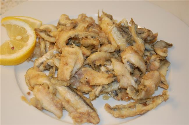 Staccate alle acciughe la testa poi spinatele aprendole a libro; lavatele rapidamente, asciugatele bene quindi passatele nella farina, nel pangrattato e friggetele in un velo d'olio. Mondate, riducete i porri a tocchetti e raccoglieteli in una casseruola insieme con mezzo litro d'acqua, un filo d'olio, un ciuffetto di finocchietto; portate il tutto su fuoco moderato e dopo 15 minuti di bollore aggiungete mezzo bicchiere di aceto, sale, pepe e, alla ripresa dell'ebollizione, spegnete e versate la marinata calda sulle acciughe fritte raccolte in un piatto piuttosto profondo; lasciatele marinare almeno 6 ore prima di servirle. Vino consigliato: Vino bianco giovane, secco, armonico, fragrante (Alto Adige Sylvaner, Colli Amerini Malvasia secco, Costa d'Amalfi bianco). |