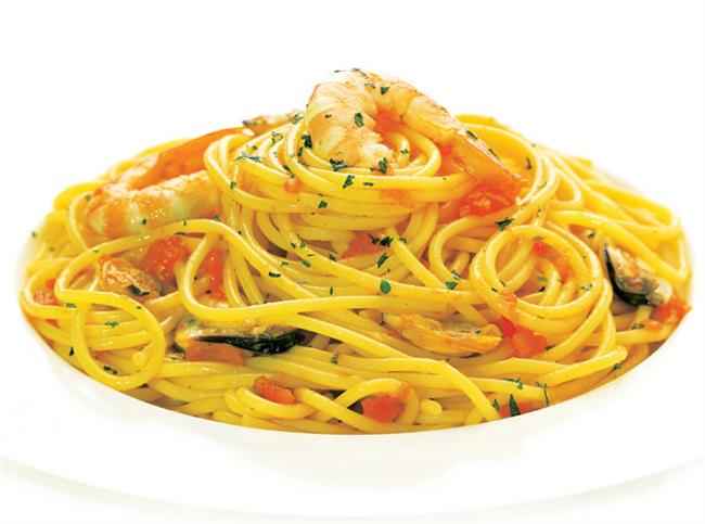 Far soffriggere in un largo tegame, nell'olio d'oliva, l'aglio e il peperoncino fresco tagliato a fettine, ma privo di semi, insieme con un grosso pizzico di origano. Calare nel soffritto le vongole già spurgate e le cozze, quindi le lumachine di mare e, infine i cannolicchi già aperti a freddo. Irrorare il tutto con il vino bianco secco, mescolare, poi incoperchiare e cuocere per circa 3 minuti, fino alla completa apertura di tutti quanti i molluschi. Unire gli spaghetti, cotti, ma scolati quando mancano circa 2 minuti alla fine della loro cottura; mescolarli al fondo e farli saltare fino a quando saranno cotti, ma ancora al dente. Completare con una cucchiaiata di prezzemolo tritato e, se si preferisce, con il pomodoro fresco tagliato in piccola dadolata. |