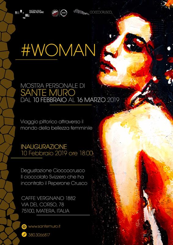 LA MOSTRA “#WOMAN” DI SANTE MURO A MATERA DAL 10 FEBBRAIO La personale dell’artista di Satriano di Lucania fino al 16 marzo presso il Caffè del Corso |