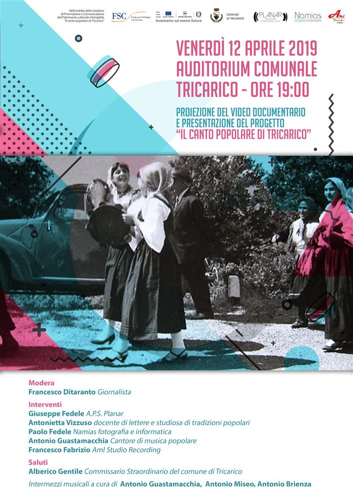 IL CANTO POPOLARE DI TRICARICO PROIEZIONE DEL VIDEO DOCUMENTARIO E PRESENTAZIONE DEL PROGETTO |