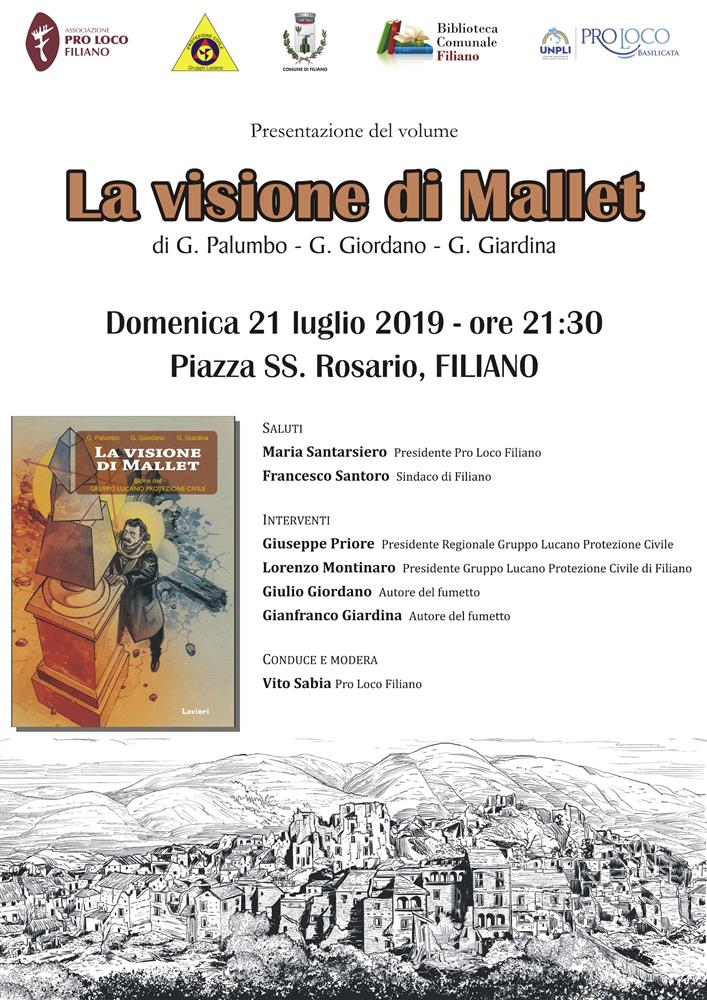 FILIANO, PRESENTAZIONE DEL VOLUME “LA VISIONE DI MALLET” Un’originale esperienza di collaborazione fra scienza e arte sequenziale. |