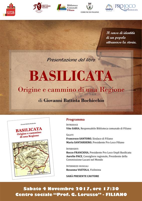 SARÀ UN “AUTUNNO DA SFOGLIARE" ALLA BIBLIOTECA DI FILIANO Presentazione del volume "Basilicata. Origine e cammino di una Regione" |