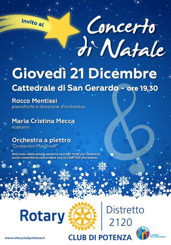 CONCERTO DI NATALE DEL ROTARY IN CATTEDRALE A POTENZA CON IL PIANISTA ROCCO MENTISSI Prevista anche la presenza del soprano Maria Cristina Mecca e dell’orchestra a plettro “Domenico Manfredi” di Avigliano |