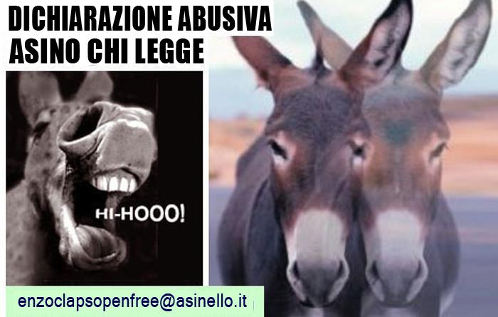 A PROPOSITO DI SCUSE NEI CONFRONTI DELLA TESTATA GIORNALISTICA DELLA TGR Oggi si: a prescindere chiedo scusa a chi le merita! Io non so se il marchio esiste - “Asinella”: “open” “free naming, logo, packaging” “referee ed impact factor” Ma se esiste, spero che l’asinella abbia una buona scusa per ragliare. |