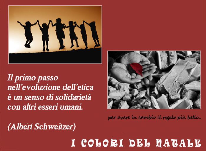 I COLORI DEL NATALE Viviamo in un mondo di luci, colori e tanto egoismo. Non ci accorgiamo che i bagliori e i colori della festa nascondono una grande tristezza nel cuore di chi soffre. E i bambini che colpa hanno? |