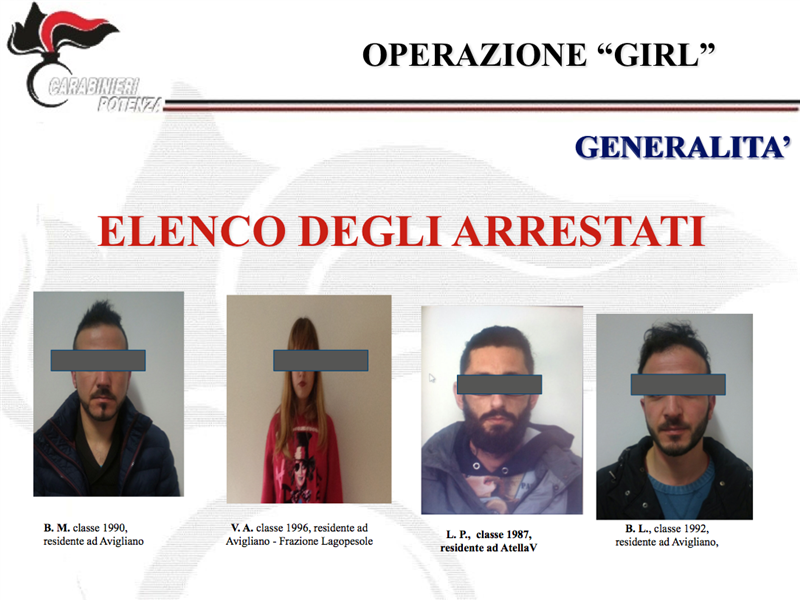 DA AVIGLIANO A MELFI, DALLE SCUOLE AI LOCALI: SGOMINATA UN’ALTRA RETE DELLO SPACCIO Operazione “Girl”, arrestati 4 giovani dai carabinieri di Potenza: cocaina, marijuana e ketamina anche a minorenni. |