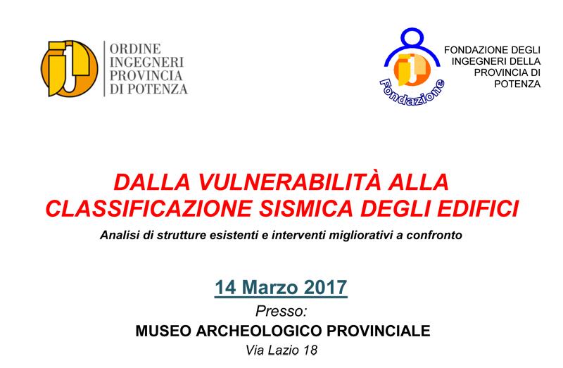 UN GRANDE SEMINARIO TECNICO GRATUITO SULLA CLASSIFICAZIONE SISMICA DELLE COSTRUZIONI Martedì 14 marzo alle ore 9 presso il Museo Archeologico Provinciale di Potenza |