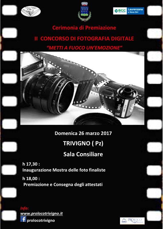 DOMENICA A TRIVIGNO LA PREMIAZIONE DEL CONCORSO FOTOGRAFICO “METTI…A FUOCO UN’EMOZIONE” Si terrà domani alle ore 17,30, nella Sala Consiliare del Comune di Trivigno |