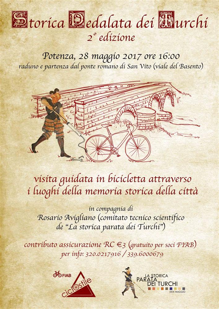 LA STORICA PEDALATA DEI TURCHI – SECONDA EDIZIONE Domenica 28 Maggio ciclOstile FIAB Potenza propone una visita guidata in bicicletta attraverso i luoghi della memoria storica della città. |