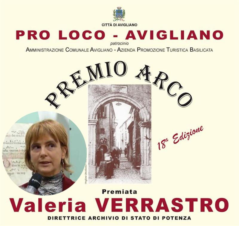 SI ASSEGNA IL PREMIO ARCO Oggi XVIII edizione a cura della Pro Loco di Avigliano. Scelta Verrastro, direttrice dell’archivio di Stato di Potenza. |