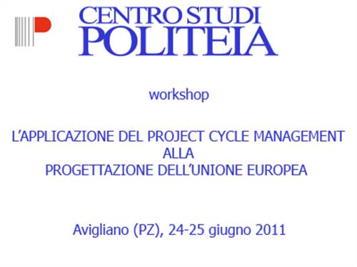 Il Centro Studi POLITEIA, con questa iniziativa, intende completare un lungo ciclo formativo sulle politiche dell UE, in cui sono state esaminate le principali politiche dell UE di interesse per le regioni europee in ritardo di sviluppo (politica di coesione e politica di sviluppo rurale), l azione "esterna" dell UE (politica di pre-adesione e programmi di cooperazione territoriale) e il sistema di finanza pubblica dell UE. Il seminario verterà sulle tecniche di progettazione che si basano sul Project Cycle Management (PCM), metodo di elaborazione e gestione di programmi e progetti ampiamente usato sia nel settore privato che in quello pubblico. Al Workshop, che si terrà presso la sede del Centro Studi e sarà coordinato dal Presidente Gerardo Coviello, interverranno come relatori gli esperti di finanziamenti europei e sviluppo locale Antonio Bonetti, che collabora da diversi anni con il Centro Studi e Roberto L. Giannoli, partner della Società di ricerca Economia Sviluppo e Ambiente (ESA) di Roma.