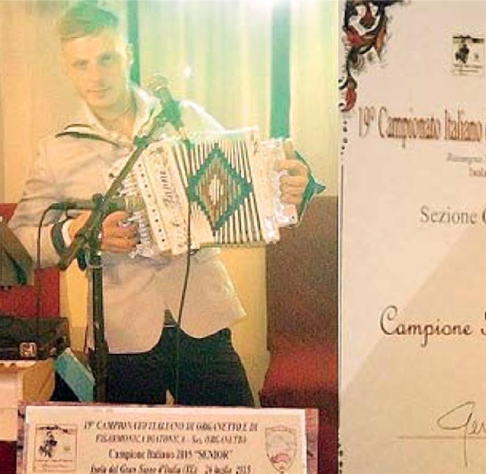 AVIGLIANO - Il 20enne lucano Donato Genovese è il nuovo campione italiano «senior» di Organetto e Fisarmonica diatonica. Il giovane aviglianese ha conquistato il gradino più alto scalzando con la sua bravura, i suoi virtuosismi e, nonostante la giovanissima età, la sua grande professionalità, oltre 300 musicisti giunti alla finale dell’importante concorso tenutosi a fine luglio a Isola del Gran Sasso, in provincia di Teramo. Genovese ha iniziato a strimpellare l’organetto all’età di soli 6 anni e da subito ha rivelato le sue grandi doti ed espresso importanti potenzialità, cominciando prestissimo a prender parte a gare ed importanti campionati. «Ho partecipato alla prima gara ad Accettura dopo pochi mesi che avevo iniziato a suonare – racconta ancora emozionato Donato - e a distanza di poco partecipai al mio primo campionato italiano a Ruoti, conquistando il 2 posto. In questi anni ho preso parte a vari concorsi interregionali e sono quasi sempre arrivato in vetta alla mia categoria». A 8 anni, grazie anzitutto alla fiducia riposta sin da subito su questo giovane talento da parte del suo maestro Rocco Errichetti, Genovese ha iniziato a suonare nel gruppo del suo insegnante storico, mentre la passione per l’organetto ha continuato a crescere e consolidarsi. «Dopo tanti anni di costanza e impegno, grazie al supporto del mio maestro e della mia famiglia, che hanno sempre creduto in me, incoraggiandomi e sostenendomi, sono riuscito a conquistare questo importante titolo di campione italiano di organetto, realizzando quel sogno che sin da piccolo accarezzavo». Donato Genovese, instancabilmente, gira la regione portando in giro per feste e manifestazioni la musica della tradizione lucana ed aviglianese, facendo ballare e divertire con la sua bravura e la virtuosistica conoscenza della musica popolare e dei segreti dell’organetto.