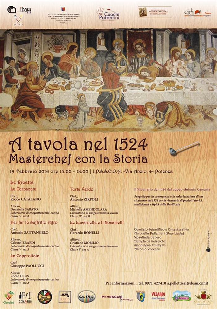 “A tavola nel 1524. Masterchef con la Storia”, con questo titolo, una singolare iniziativa prenderà vita oggi pomeriggio -dalle ore 15,00 alle ore 18,00 presso l’IPSSEOA di Potenza, con le ricette tratte da un manoscritto del 1524 di Antonio Camuria, cuoco alle dipendenze dei Carafa, nobile famiglia di Lagonegro