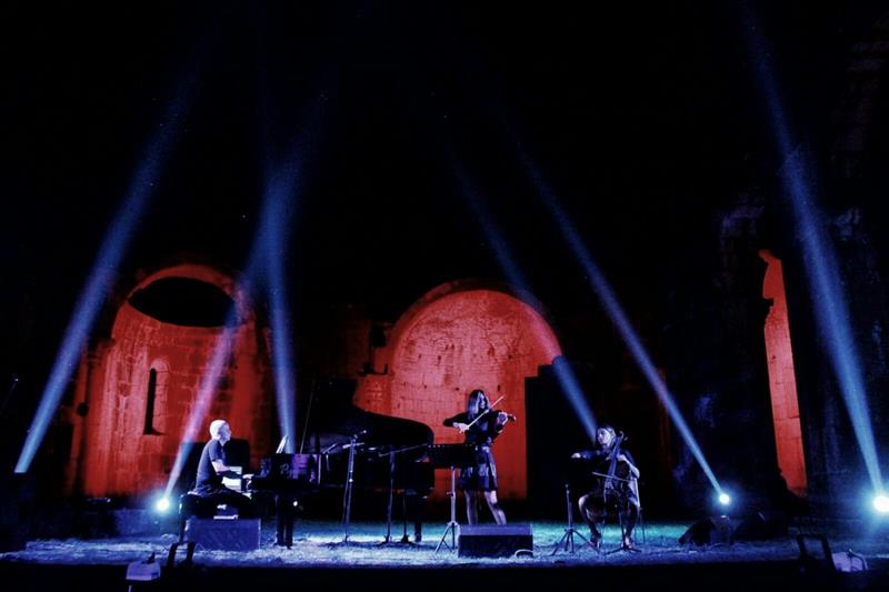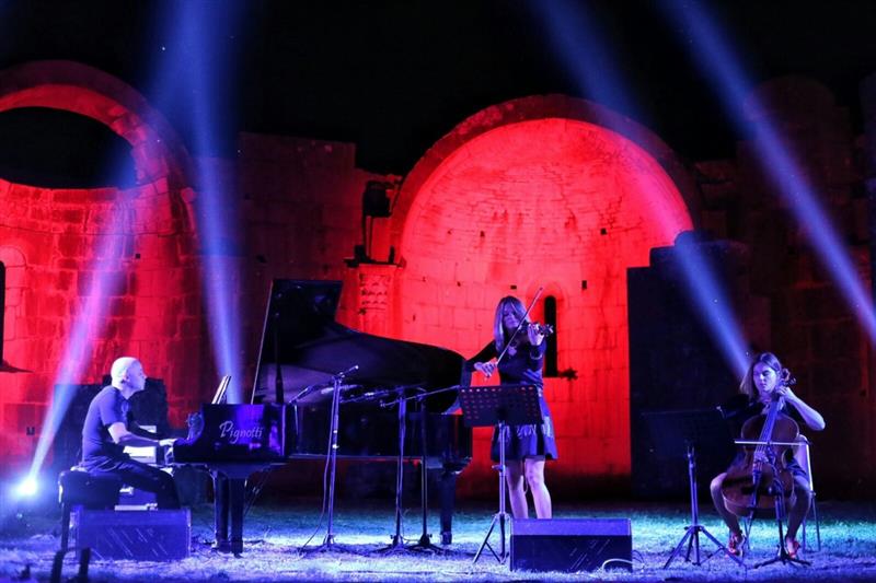 Nella serata del 25 agosto la Chiesa Incompiuta, illuminata da luci scenografiche, si è trasformata in un luogo magico dove ascoltare musica di qualità, da quella del pianista compositore lucano Rocco Mentissi, che ha presentato tre suoi brani originali, alle grandi colonne sonore che hanno fatto la storia del cinema degli ultimi decenni, eseguite dal trio Kinéma. L’ensemble, composto da Roberto Jonata al pianoforte, Gilda Urli al violino, Francesca Favit al violoncello, nell’atmosfera unica creata dalla suggestiva cornice, ha offerto ad un pubblico di oltre cinquecento persone un avvincente viaggio nelle musiche da film composte da autori del calibro di Hans Zimmer, Lalo Schifrin, Michael Nyman, Wim Mertens, Ryuichi Sakamoto, utilizzate per celebri pellicole come “Il gladiatore”, “Mission impossible”, “Pearl Harbor”, “Il gladiatore”, “Pirati dei Carainbi”, “L’ultimo samurai”, “Lezioni di piano”, “Profondo rosso” e molte altre ancora.