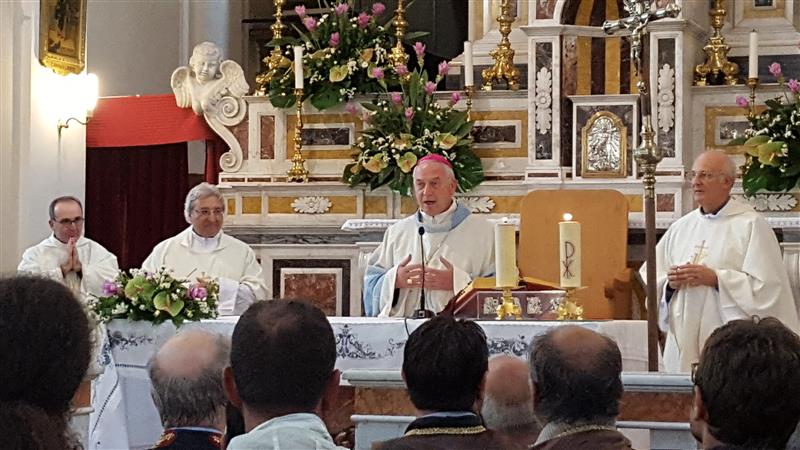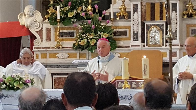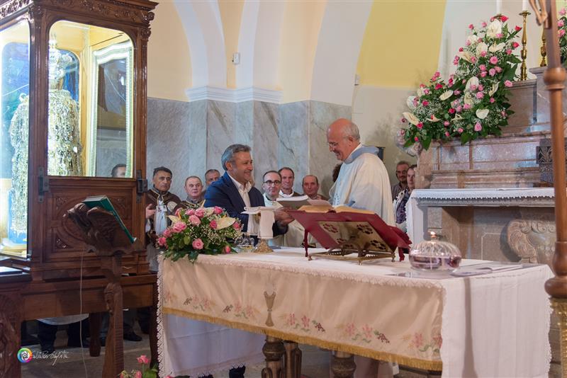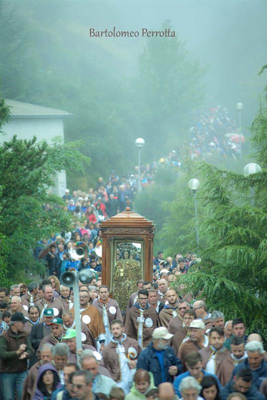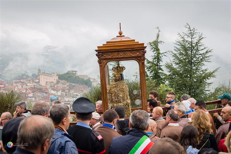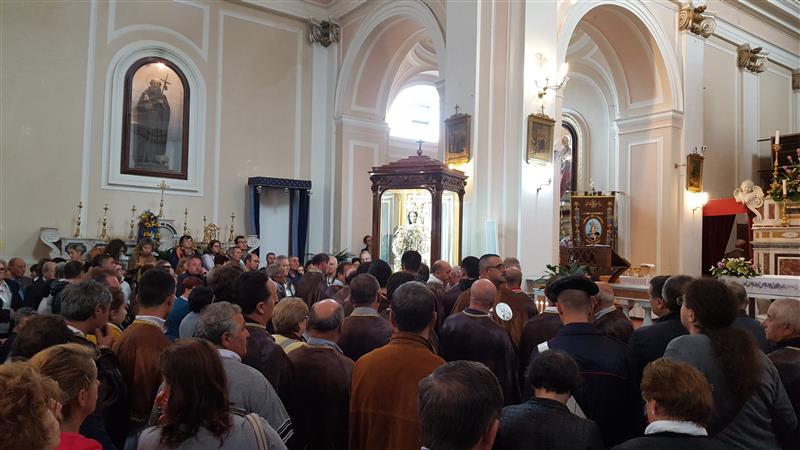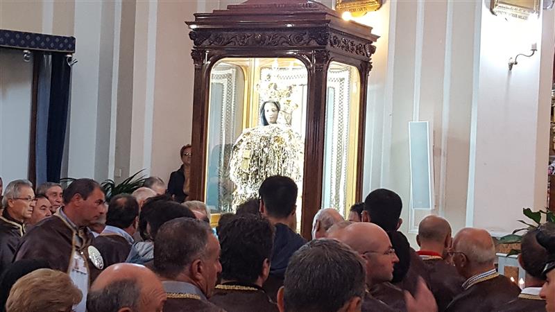 Il ritorno in paese è preceduto, come di consueto il sabato pomeriggio, dalla “vestizione” della statua all’interno santuario accompagnata da canti, seguita dalla recita del Santo Rosario, dalle celebrazioni eucaristiche e dalla veglia notturna. La solenne concelebrazione eucaristica delle ore 18,00 è stata presieduta da Monsignor Alfred Xuereb, segretario per l’Economia di Sua Santità Papa Francesco, alla presenza di autorità civili e militari.
