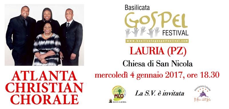 Farà tappa a Lauria mercoledì 4 gennaio 2017 la quinta edizione del Basilicata Gospel Festival, la rassegna itinerante di musica gospel organizzata dall’associazione culturale “Il Circo dell’Arte” di Venosa in collaborazione con la Artistica Management di Pasquale Cappiello. In programma il concerto della Atlanta Christian Chorale, quartetto voci e piano che si esibirà dalle ore 18.30 nella chiesa madre di San Nicola. Grazie alle straordinarie voci e alle inconfondibili sonorità black della formazione americana, il pubblico potrà ascoltare celebri brani come “Total praise”, “Down by the riverside”, “When the saints go marching in”, “Oh happy day” e tanti altri classici della tradizione gospel. La Atlanta Christian Chorale riunisce interpreti affermati ed emergenti della scena gospel afro-americana ed è guidata da Marsha Wilson, membro del prestigioso Gospel Music Workshop of America e figura carismatica del gospel made in USA. Completano la formazione Derrick Tuggle, Portia Houze e Elvis Lewis Jr. al pianoforte, che vantano collaborazioni con importanti musicisti e gruppi del panorama gospel. Provenienti dalla Georgia, regione nel Sud degli Stati Uniti fortemente legata alla tradizione gospel, combinano la potenza vocale con la spiritualità tipica di questo genere musicale, proponendo brani spiritual che affondano le radici nei canti degli schiavi di colore impiegati nei campi di cotone del Sud degli Stati Uniti, mescolati ai moderni suoni del soul e del rhythm and blues. Il Basilicata Gospel Festival è un grande evento che regala l’energia e la carica emotiva della vera musica gospel degli Stati Uniti. Ogni anno ospita esclusivamente formazioni internazionali, consentendo un vitale scambio culturale e permettendo agli spettatori di conoscere il gospel originale dei neri d’America: un canto che racchiude fede, amore e gratitudine, che sa emozionare, trascinare, comunicare messaggi di gioia. La quinta edizione della manifestazione, partita lo scorso 26 dicembre, ha finora coinvolto i comuni lucani di Castelgrande, Abriola e Grassano, Sant’Andrea di Conza in Campania, Minervino Murge in Puglia e si concluderà il 5 gennaio a Venosa.